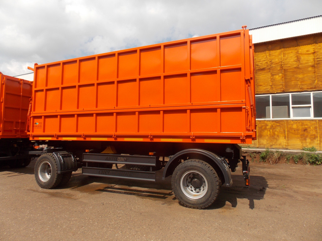 Платформа самосвальная, ручное запирание бортов, верхний ряд боковых бортов на верхней навеске, нижний ряд боковых бортов стальной подвижный на нижней навеске. Разгрузка на 2 боковые стороны и назад.