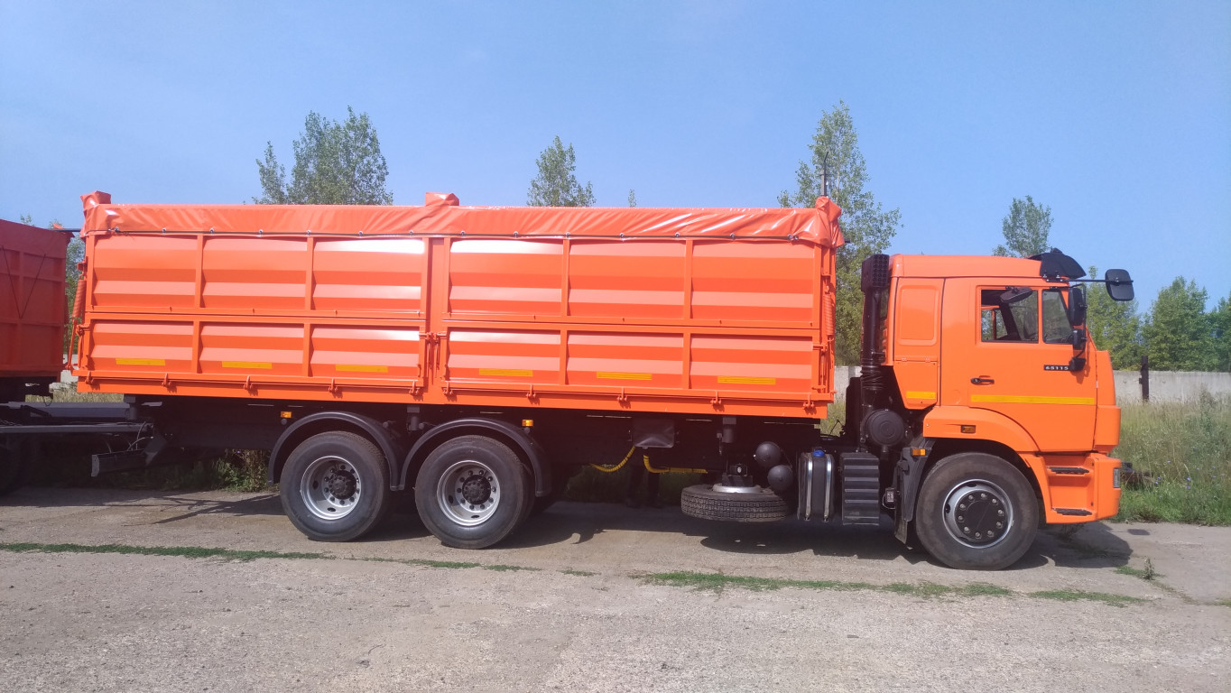 Автомобиль-самосвал зерновоз на базе шасси КАМАЗ 65115 с прицепом.